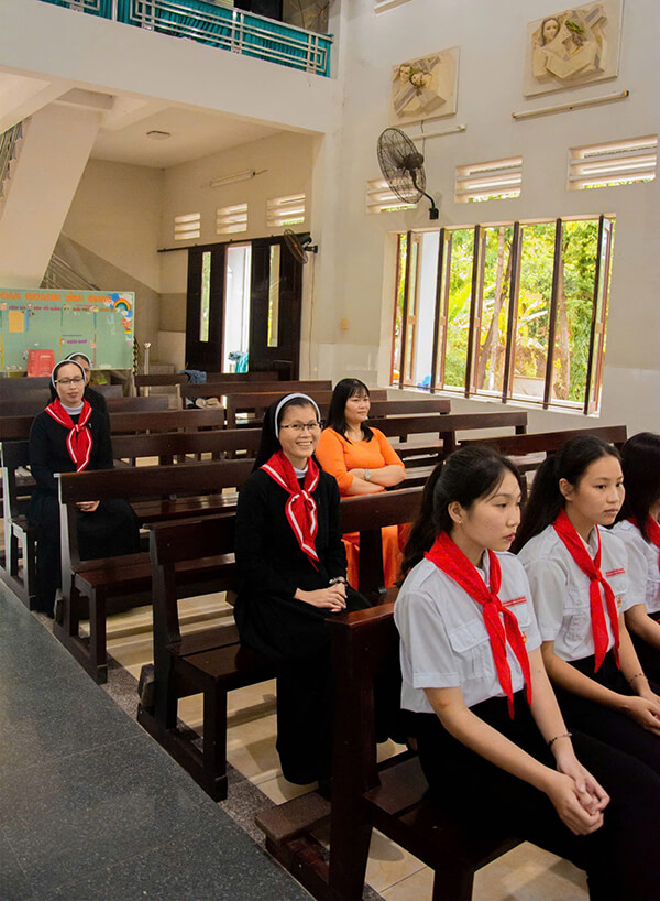 Lm Gioakim Nguyễn Văn KhoanChị em giúp ca đoàn, dạy giáo lý, dọn bàn thờ, phòng thánh, giúp lễ sinh … ngoài ra, các chị cũng sắp xếp thời gian đi thăm viếng người già yếu neo đơn có hoàn cảnh khó khăn.