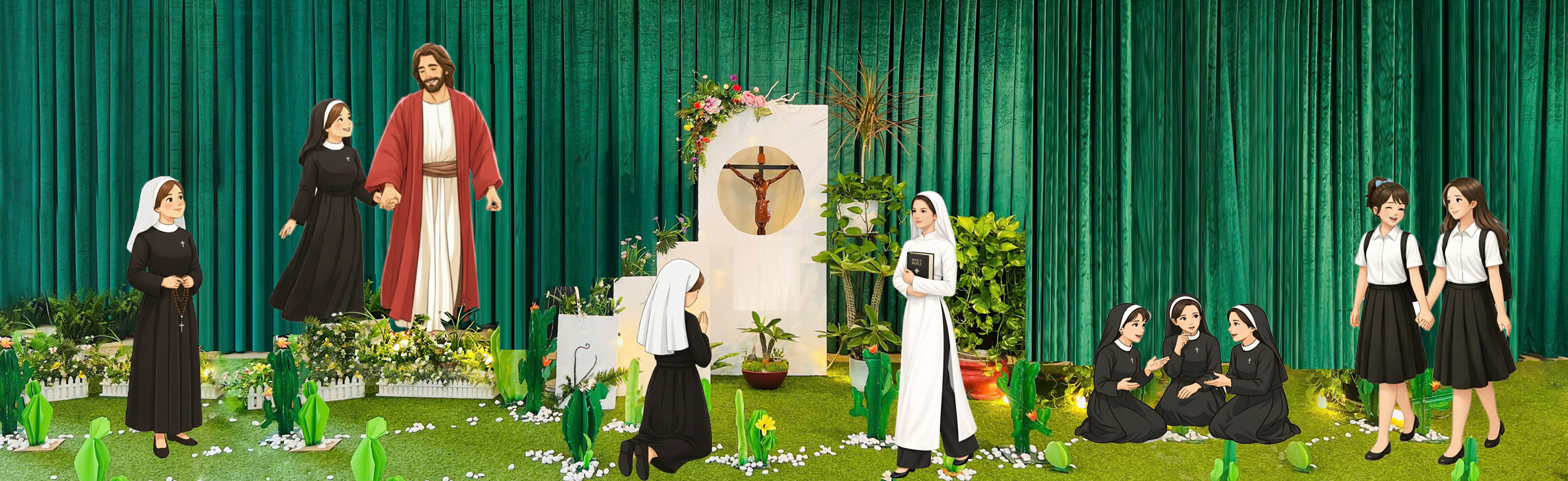 Nếu bạn đang mang trong tim bạn một thao thức yêu mến Chúa, khát khao sống đời hiến dâng, hãy mạnh dạn bước tới! Cánh cửa Hội Dòng luôn rộng mở, sẵn sàng chào đón bạn trên hành trình khám phá ơn gọi. Hành trình của tình yêu, hy vọng và trao ban trọn vẹn.”